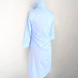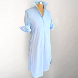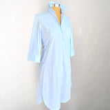 Made in Italy exclusively for Shirtini. Versatile and easy to wear. Soft, yet crisp cotton stretch blend. 3/4 sleeves with single button cuff to wear down or cuff up. Black mother of pearl buttons run the length of the dress. Subtle front dart pockets (we love pockets). Rounded hem with side slit to show off just a bit of leg. 70% Cotton 27% Polyamide 3% Elastane. Try it belted too!