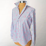 Casual luxury from Frank and Eileen. Superfine 100% Italian cotton. Wear out, tucked, half tucked, or tied. Single chest pocket. Long sleeves. Mother of pearl buttons.