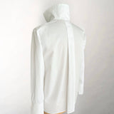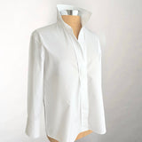 Elegant cotton shirt with a slightly fitted cut. Long sleeves with a 4 1/2 inch notched cuff. The cuffs can be folded back and worn as a 3/4 length. A crisp 3 1/2 inch collar you can flip up (we always do) or fold neatly down. Box pleat in back. 100% Japanese cotton.