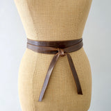 Obi Slim Belts are one size fits most. Approximately 75" long and 2.25" wide at the widest point. Our model has a 27" waist. Each belt is unique and may vary slightly in both size and color.