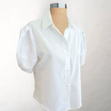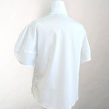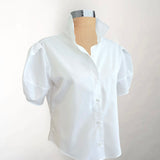 Beautiful cotton shirt featuring lantern sleeves. A crisp collar you can flip up (we always do) or fold neatly down. Mother of pearl buttons. 100% Japanese cotton.