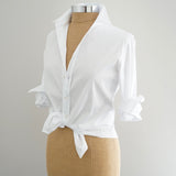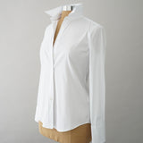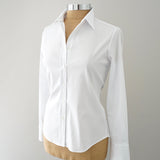 Expertly crafted in Italy for Shirtini. Luxurious Egyptian cotton with a bit of stretch so you can work, play, or party. May be worn out, tied, or tucked. Crisp collar to pop or fold neatly down. Long sleeves to style as you please. Single button cuffs. Mother of pearl buttons. 70% cotton, 27% nylon, and 3% elastane.