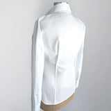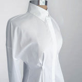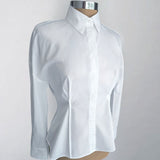 New arrival from expert Italian shirtmaker, Xacus. 100% Italian cotton. Very fitted style. Long sleeve style with darts in the front and back. Drop shoulder - the shoulder seam begins a few inches down the arm. Mother of pearl buttons. This style is very similar to the Madison shirt from Xacus.