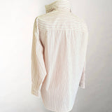 Casual luxury from Frank and Eileen in a feminine take on the oversized button up. 100% Italian lightweight cotton. Long sleeves. Curved shirttail hem. Drop shoulder. Single button cuff. Mother of pearl buttons. Oversized chest pocket.