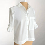Beautiful cotton shirt featuring an exquisitely pleated back. Long sleeves with a single button cuff. Single chest pocket. A crisp collar you can flip up (we always do) or fold neatly down. Slightly longer in the back. 100% Japanese cotton.